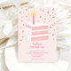Ein niedliches Stück rosa Kuchen und Single Kerze zum ersten Geburtstag. Gestalten Sie dieses Design einfach mit Ihren Party-Details! Karo unsere Matching-Kollektion für die Koordination von Artikeln heraus.