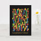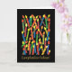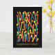 Eine Birthday Card in leuchtenden Farben mit Kerzen und "Happy Birthday" auf Spanisch, aus einer handbemalten Papiertüte von Judy Adamson. Die Innenseite wird für Ihre eigene Nachricht leer verlassen.