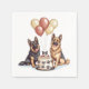 Niedliche Illustrationen deutscher Schäferhunde anlässlich einer Geburtstagsfeier. Ideal für Liebhaber und Hundeeltern.