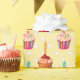 Die süße Geschenkpackung mit farbenprächtigem Kuchenmuster auf hellgelbem Polka-Dot-Hintergrund.