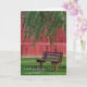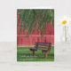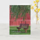 Geburtstagsbank unter einem weinenden Weidenbaum nach roter Scheune