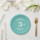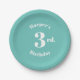 Moderne Kindergeburtstag Individuelle Name Nummer aquamarin und weiß Party Papier Teller