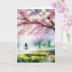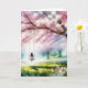 Eine ruhige Szene zeigt ein Mädchen auf einer Schaukel unter einem blühenden Kirschblütenbaum, umgeben von einer friedlichen Landschaft. Text kann geändert werden.