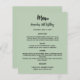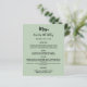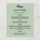 Ein schlauer grüner Hintergrund. Schwarzer Text. Personalisieren Sie Ihren Namen, das Datum und das Menü und fügen Sie es hinzu. Sie können mehr Text hinzufügen, Fotos auf der Rückseite. 1 Blatt = 1 Menü, mit dem die Kante an Kante aufgedruckt ist.