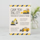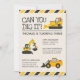 Dieses wunderbare Design der Kindergeburtstag-Party Einladung zeigt ein Bauthema mit einem Bulldozer, einem Bagger und einem Frontlader. Das Design bietet die Möglichkeit, das Alter des Kindes als Wort und Zahl darzustellen. Die Altersnummer sitzt auf dem Baggereimer und kann mit einem anderen Schriftart-Stil, Größe und Farbe personalisiert werden. Sie kann bei Bedarf auch in eine besser geeignete Position gedreht werden. Ideal für eine Party Einladung für Jungen oder Mädchen, die sich in schweren Baufahrzeugen und schweren Nutzfahrzeugen befinden.