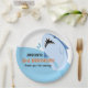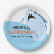Kindergeburtstag Party Teller mit einem Hai und einem blauen Ozean Hintergrund. Personalisieren Sie dieses Produkt, indem Sie den Namen, das Alter, das Veranstaltungsdatum, eine Danksagung oder einen beliebigen benutzerdefinierten Text Ihres Kindes hinzufügen. Ideal für eine große Meerestier Thema Geburtstagsfeier für einen Jungen.