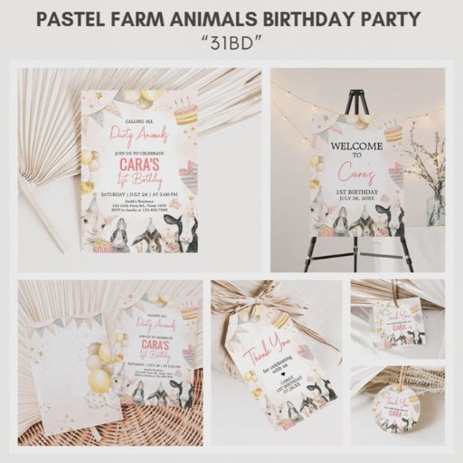 Pastel Farm Animals Birthday PartyDesignt von Camille R