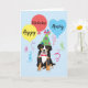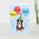 Herzlichen Glückwunsch zum Geburtstag mit diesem niedlichen Design ein niedliches, Party-Hut-Hut Berner Hund Welpe umgeben von bunten Ballons und Streamern. Der Name kann leicht geändert werden; klicken Sie einfach auf die Schaltfläche "Kunden".