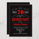 Einladung zur 70. Geburtstagsfeier. Elegantes Retro-Design in Schwarz, Rot und Weiß mit Chalkboard-Muster und Skript-Schriftart. Feiert bis 70 Jahre! Nachricht, wenn Sie weitere Anpassungen benötigen.