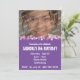 Diese anpassbare Geburtstagsparty Einladung beinhaltet rosa und lila Polka Punkte, anpassbaren Text, eine Fotovorlage für Ihr Foto.