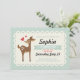 Eine Geburtstagsfeier-Einladung für ein Mädchen mit einem Vintagen / Retro-Stil und einer niedlichen Darstellung eines Hirsches. Mit einem süßen Herzmuster auf dem Rücken und einem Spitzenmuster auf der Vorderseite!