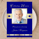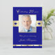 Eine 70. Geburtstagsfeier ist ein wunderbarer Anlass, und diese 70. Geburtstagsfeier ergänzt den Tag mit einer Einladung, in der Sie ein Foto dieser besonderen Person einladen können. Das Foto ist von einem goldenen Rahmen auf marineblau-blauem Hintergrund umgeben. Unter dem Foto erscheinen die Worte "70 Jahre feiern" über dem Foto und "Bitte schließen Sie uns an, um zu ehren". Sie können das Design mit dem Namen des Geburtstags oder der Geburtstagsfrau personalisieren. Die Rückseite der Einladung enthält alle spezifischen Party-Details. Eine tolle Einladung zu einem 70. Geburtstag. Copyright henishouseuse paper