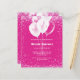 Ein warmes rosa Hintergrund. Dekoriert mit rosa Konfetti und weißen Ballons. Weißer Text. Personalisieren und fügen Sie einen Namen und Party-Details hinzu. 1 Blatt = 1 Einladung mit Druckkante bis Kante.