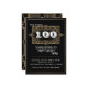 Feiern Sie eine 100. Geburtstagsparty oder jedes Alter, indem Sie die Details auf der Vorlage ausfüllen. Dieses elegante schwarz-goldene Design erinnert an die rauschenden 20er Jahre und eignet sich perfekt für ein großartiges Gatsby-Event.