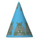 Geburtstagsparty Spaß Hippo Party Hut für den Geburtstag Hut Dekoration. Ein niedliches Dekorationsdesign für Kinder Party Spaß. Das Hippo wäre großartig für eine Zoo-Themenparty oder wenn das Kind den Hippo Liebe. Der Hintergrund ist blau und der Hippo in Grüntönen.