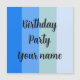 Cooles blaues Streifen Muster mit Text: Geburtstagsparty und Namensvorlage. Fit an einen maritimen Stil.