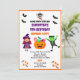 Niedliche Halloween Party Einladung mit lustigen Halloween Monstern mit Halloween festliche Typografie, die Sie leicht für den ganz besonderen Tag Ihres Kindes personalisieren können.