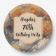 Feiern Sie jedes Alter mit einer schönen, individuell anpassbaren Papierplatte. Herrliche Rosa- und Orangenchrysanthemen mit blauen Schmetterlingen und üppiger Vegetation. Ein elegantes und dennoch hübsches Design.