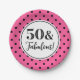 50 und fabelhafte Geburtstagsparty Teller in rosa Schwarz und Weiß Polka Dots Muster.
