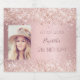 Ein Label für eine mädchenhafte und glamouröse 21. Geburtstagsparty (oder jedes Alter). Rosa Farbverlauf mit Rose Gold Imitate Glitzer Staub. Personalisieren und fügen Sie Ihr eigenes Foto des Geburtstagsmädchens, ein Datum, Name und Alter. Der Text: Der Name wird mit einem modernen handgeschriebenen Stilskript geschrieben.