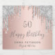 Ein trendiges und glamouröses 50. (oder jedes Alter) Geburtstagslabel. Ein gürteliger und femininer Rose goldfarbener Hintergrund, verziert mit Imitaten silber und Rose Gold, rosa Imitat Glitzer Tropfen, Farbe Tropfen aussehen. Mit dem Text: 50 und Happy Birthday. Personalisieren und fügen Sie einen Namen und ein Datum hinzu. Geburtsdatum oder Geburtsdatum des Party. Grauer Text. Happy Birthday ist mit einem modernen handgeschriebenen Stift geschrieben.