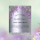 Eine moderne, stilvolle und glamouröse Einladung für die 50. (oder jedes Alter) Geburtstagsfeier einer Frau. Ein lila und Imitate silbermetallicer Hintergrund mit Imitaten silberner Glitzer Tropfen, Farbe Tropflook. Der Name ist mit einem modernen, schwarzen Handschrift geschriebenen Stil geschrieben. Personalisieren und fügen Sie einen Namen, Alter und Ihre Party-Details. Zurück: Imitate silberer Hintergrund, Postkartendesign.