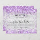 Eine junge und trendige Save the Date für eine 40. Geburtstagsfeier (oder ein beliebtes Alter). Ein modernes Imitat silber aussehender Hintergrund mit violett, lavendelfarbenen Imitaten Glitzer Glitzern. Personalisieren und fügen Sie ein Datum und Name/Alter 40. Der Text: Save the Date ist mit einem großen angesagten, handgeschriebenen Stilskript geschrieben.