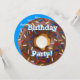 Eine super süße Geburtstagsfeier mit dieser süßen und jugendlichen Einladung! Runde Einladung ist als große Schokolade mit Regenbogensprinklen überzogen. Es gibt Text auf der Vorderseite, der sagt Birthday Party!! in Weiß mit blauem Schriftart. Die Rückseite der Einladung ist massiv blau mit vollständig anpassbarem Text in weißem Schriftart. Das ist eine großartige Geburtstagsfeier für Ihre Süßigkeiten oder ein Dessert-Party!