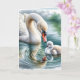 Ein anmutiger Schwan schlängelt sich hinab zu seinem fließenden Cygnet in ruhigen Gewässern. Alle Texte können geändert werden.