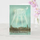 102. Geburtstagskarte. Eine Karte mit einem Retro-Filmplakat. Shine ein Rampenlicht für einen glücklichen Geburtstag! Eine Nachtstadt mit einem Lichtstrahl, der die Zeit in die Höhe treibt.