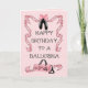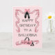 Der perfekte Geburtstag Gruß für eine Ballerina: Alles in Rosa und Schwarz, Bänder, eine geschmückte Tasche, Ballettschuhe und in einer Volkskunst Ballerina. Sie können diese Karte personalisieren, um eine einzigartige Botschaft am besonderen Tag eines Tänzers zu machen!