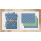 Elegante, trendige Party-Packpapiere. Blauer und schlauer grüner Hintergrund, weißer Text. 2 Blätter mit staubblauem, ein Salbei grün. Personalisieren und fügen Sie einen Namen und Alter.