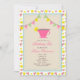 Eine Geburtstagsfeier mit einem Tee-Party-Thema.  Invite hat eine Illustration eines rosa Teacup mit Zitrone oben. Das Restaurant lädt außerdem mit solidem und gingham-Bunding oben und einem rosa Rose- und Zitronenmuster-Hintergrund ein.  Personalisieren Sie den Text mit Einzelheiten Ihrer Veranstaltung.