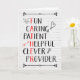 Geburtstagskarte für Papa mit beschreibendem Text, inklusive Spaß, kümmre, Geduld, hilfsbereit, clever, Provider, mit bestimmten Buchstaben, die "VATER" Karte ausdrücken, hat belasteten weißen Backstein und Kaninchen, Herz, Pfeil und Glühbirnen Doodles. Ändern Sie den inneren Vers, wenn Sie möchten.