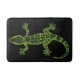Bad-Matte mit einem niedlichen grünen Gecko mit hellen gelben Augen.