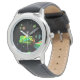 Kinder Edelstahluhr mit schwarzem Lederarmband
