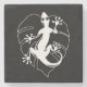 Gecko Lizard auf dem Leaf Stone Untersetzer. Gecko auf einem herzförmigen Blatt, grafisches Design für Eidechsenliebhaber.