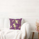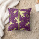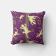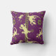 Stilvolles lila und grünes Kissen, bedruckt mit modernem Gecko-Muster. Das Muster zeigt cremefarbene Geckos, schlaue, ethnische Details, auf einem lila Hintergrund.