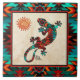 Brighten Sie Ihre Zuhause mit diesem einzigartigen "One of a Kind" Gecko und Sun Keramik Tile! Es besitzt eine Südwest Gecko Lizard und Sonne auf einem Sandsteinhintergrund......umgeben von einer türkisfarbenen, orangen & schwarzen Grenze!