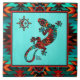 Brighten Sie Ihre Zuhause mit diesem einzigartigen "One of a Kind" Gecko und Sun Keramik Tile! Es hat eine süd-westliche Gecko Lizard und Sonne auf einem türkisfarbenen Hintergrund......umgeben von einer türkisfarbenen, orangen & schwarzen Grenze!