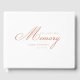 Kundenspezifisch, denkmal, elegant, einfach "In Loving Memory" sanft-braun-orange Handschrift Schriftart, weiße Beerdigung Gästebuch. Erhältlich in verschiedenen Farben und Größen.