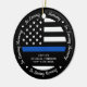In liebender Erinnerung. Ehre deinen geliebten Polizeibeamten und mit diesem Thin Blue Line Police Memorial Schmuck in einer amerikanischen Fahne schwarz und blau Design in Polizei Flaggen Farben. Personalisieren Sie mit Ihrem polizeilichen Foto, Offiziersnamen und EOW-Datum. Dieses dünne blaue Polizeidenkmal wird ein wertvoller Pfand sein, um einen gefallenen Polizisten oder Strafverfolgungsbeamten zu ehren. Perfekt für Polizeiabteilungen, um einen gefallenen Offizier zu ehren. COPYRIGHT © 2020 Judy Burrows, Black Dog Art - Alle Rechte vorbehalten. Keramik von Memorial-Ornamenten der Polizei für das liebende Gedächtnis gefallen