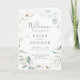 Dieses luftige Grün- und Goldblatt-Hochzeitsprogramm ist perfekt für eine moderne Hochzeit. Das elegante botanische Design besticht durch helle und luftige Eukalyptusfarben in Aquarellfarbe, die mit skurrilen goldenen Glitzer-Blätter besticht.