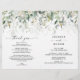 Mit diesem gefalteten Hochzeitsprogramm werden alle Lieben über die Einzelheiten Ihrer Hochzeit lesen! Einfache Bearbeitung des Designs, um ein einzigartiges Hochzeitsprogramm zu erstellen. Fügen Sie ein Foto auf die Rückseite! **Bitte beachten Sie: Diese wird flach ankommen und Sie müssen die Hälfte falten, um Programme zu erstellen. Dieses elegante Design besticht durch eine sanfte Aquarellgestaltung aus Eukalyptus, Grün und Goldverzierungen. Klicken Sie auf die Schaltfläche Personalisieren und "Klicken Sie, um weitere Anpassungen vorzunehmen", um die Farbe der Schriftsetzung zu bearbeiten. Sehen Sie sich die gesamte Kollektion an, um mehr passende Artikel zu finden!