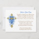 Eine schöne, flache Gedenkkarte für Beerdigungen, Trauerfeiern oder zum Versenden an Freunde und Familie in Erinnerung an einen Verstorbenen. Sie können ein Foto im personalisierten Bereich und die Lebensgeschichte Ihres geliebten Menschen hinzufügen. Auf der Rückseite befindet sich ein religiöses Gedicht zum Trost, das Sie daran erinnert, dass Ihr geliebter Mensch jetzt in Gottes Armen ist. Die Akzentfarben sind Blau und Gold. Es gibt auch ein goldenes Kreuz mit blauen Blumen darauf.