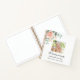 Ein Gästebuch für eine Gedenkfeier oder Beerdigung. Eine weiße Hintergrundfarbe. Die Einrichtung besteht aus einer Rose mit Gold und Rosa Rosa, Blume und Eukalyptus-Grünpflanzen. Personalisieren und hinzufügen eines Fotos, Namens und Datums.
