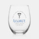 Dieses maßgeschneiderte Geschenk aus Abschluss-Weinglas der Medizinschule bietet moderne blaue Typografie für eine Klasse von 2025-Absolventen. Passen Sie mit Ihrem geschlossen Jahr unter dem Caduceus für große personalisierte Krankenschwester oder Arzt zu halten.