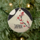 Illustration eines japanischen Ahornbaums vor einem Berg mit einem Mond darüber. Feiern Sie Ihre Erinnerungen von Japan. Der Name Japan steht ganz unten in einem Deko-Schriftart. Wählen Sie Ihre Schmuckform aus.
