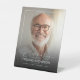 Die Einführung eines minimalistischen und eleganten "In Loving Memory" Foto Tafelschilds, das dazu gedacht ist, die Erinnerung an Ihren Lieben mit Eleganz und Anmut zu ehren. Der sanfte Fade-Effekt verleiht dem Schild Tiefe und Gelassenheit und trägt so zu seiner schwachen Schönheit bei. Dieses herzliche Willkommenszeichen verbindet Einfachheit und Eleganz und schafft so einen tiefen und ätherischen Weg, um die Erinnerung Ihres Lieben zu ehren.