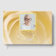 Personalisieren Sie die elegante White Rose Blume Celebration of Life Memorial Gästebuch Teilnehmer bei Ihrem Totentribut, weck oder Beerdigung Service zu unterschreiben. Passen Sie es mit dem Namen Ihres verstorbenen Lieben, Bild, Geburtstag und Tag des Todes an. Dieses stilvolle Gästebuch mit Blumen zeigt ein hübsches nahes Blumenfoto einer cremefarbenen Blume mit weißem Rose mit einem Farbverlauf mit weißem Overlay und Schriftart mit Goldfolie.